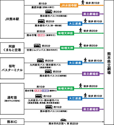 季節のアート「いけばな」≪10月の花≫ 熊本県立劇場エントランスホールの一角に、 いつも欠かさず四季折々の生け花が展示されみなさまをお迎えしています。 季節感あふれるアートとして劇場に彩を添えています。 協力/熊本県華道協会 各流派の... 2025.09.30 詳しく見る 【フルVer】特別対談 劇作家・チェルフィッチュ主宰 岡田利規×熊本... Special feature 特別対談 日時:2025.8.2(土) 場所:熊本県立劇場 演劇ホール舞台上舞台、ホワイエ 熊本県立劇場の舞台上につくられた約150人収容の観客席と舞台セ... 2025.09.20 詳しく見る 【寄稿】熊本市立大江小学校校長 杉本佳秋 熊本県立劇場と大江小学校のつながり ~音楽が紡ぐ31年の歩み~ 平成7年度から始まった熊本県立劇場でのスクールコンサートは、本年度で31回目を迎え、大江小学校の大切な文化活動として継続されてい... 2025.09.20 詳しく見る 【県立劇場ギャラリー】人類の行進 MARCHA DA HUMANID... 人類の行進 MARCHA DA HUMANIDATE マナブ 間部 作 熊本県立劇場の館内に多数展示されているアート作品。今回は「人類の行進」をご紹介いたします。 モール(廊下)に掛けられて... 2025.09.20 詳しく見る 【県劇職員が本音を綴るリレーコラム】No.26 「日常に、劇場を。」 「日常に、劇場を。」は開館40周年を機に、熊本県立劇場が掲げたスローガンです。もともと私は大学まで体育会系で育ってきた人間で、文化・芸術というものにはほとんど関りがなかった... 2025.09.20 詳しく見る 本の中にある劇場「少女たちの戦争」編/中央公論新社 出版社/中央公論... 熊本県立図書館タイアップ企画『本の中にある劇場』 県立図書館とのタイアップは2007年度から続いています。このコーナーでは、図書館職員おススメの一冊をご紹介します。 少女たちの戦争 ... 2025.09.20 詳しく見る 【みなさまの声にお応えします!】県立劇場への交通アクセス情報が知りた... 県立劇場への交通アクセス情報が知りたい! 今回は拡大版として劇場への交通アクセス情報をまとめてご紹介します。 Q1 県外から劇場への交通アクセスは? 劇場HPの「交通アクセス」に主なルートと... 2025.09.20 詳しく見る 【利用団体公演レポート】フルートアンサンブル「エンジェルブレス」 フルートの森コンサート 2025年7月21日(月・祝) 熊本県立劇場コンサートホールホワイエ フルート演奏者仲間として「エンジェルブレス」の二人も参加した「フルートの森コンサート」 ... 2025.09.20 詳しく見る 特集 熊本県芸術文化祭オープニングステージ『はじまり はじまり~県劇... Special feature 熊本県芸術文化祭オープニングステージ はじまり はじまり ~県劇舞台づくり学校~ クリエイション日記 熊本県芸術文化祭の幕開けを華やかに飾る「熊本県芸術文化祭オ... 2025.09.20 詳しく見る 特別対談 劇作家・チェルフィッチュ主宰 岡田利規×熊本県立劇場館長 ... Special feature 特別対談 言語を入口として垣間見える 『宇宙船イン・ビトゥイーン号の窓』の挑発 熊本県立劇場の演劇ホールの舞台上に作られた約150人収容の観客席と舞台... 2025.09.20 詳しく見る 季節のアート「いけばな」≪9月の花≫ 熊本県立劇場エントランスホールの一角に、 いつも欠かさず四季折々の生け花が展示されみなさまをお迎えしています。 季節感あふれるアートとして劇場に彩を添えています。 協力/熊本県華道協会 各流派の... 2025.09.02 詳しく見る 季節のアート「いけばな」≪8月の花≫ -熊本県立劇場エントランスホールの一角に、 いつも欠かさず四季折々の生け花が展示されみなさまをお迎えしています。 季節感あふれるアートとして劇場に彩を添えています。 協力/熊本県華道協会 各流派... 2025.08.05 詳しく見る 季節のアート「いけばな」≪7月の花≫ -熊本県立劇場エントランスホールの一角に、 いつも欠かさず四季折々の生け花が展示されみなさまをお迎えしています。 季節感あふれるアートとして劇場に彩を添えています。 協力/熊本県華道協会 各流派... 2025.07.01 詳しく見る 【館長室から】No.1 我が家にはラグドールとキジトラ猫の猫2匹、そしてジャ—マン•シェパードが同居している。 ホワイトのセミロングヘア—が印象的なラグドールは、顔がポインテッドの薄茶色で、とてもキュ—トで、愛らしく、それ... 2025.06.20 詳しく見る 【県立劇場ギャラリー】立方体をななめに通りぬける円筒(堀内正和 作) 立方体をななめに通りぬける円筒 堀内 正和 作 熊本県立劇場の館内に多数展示されているアート作品をご紹介する「県立劇場ギャラリー」。モール(廊下)脇にある「光庭」に置かれた不思議な彫刻は、京都... 2025.06.20 詳しく見る 【県劇職員が本音を綴るリレーコラム】No.25 それでも劇場が好き 1991年、妻の郷里である宮崎へ移住。心優しき変人と出会い、そのご縁でアングラ劇団の舞台監督へと…。そして、妹尾河童さんが公演で来県。建設中だった県の劇場にもふれられ、そこで... 2025.06.20 詳しく見る 【舞台さんのお仕事道具】平台(ひらだい) 平台(ひらだい) 舞台空間を創り出す”頼りに