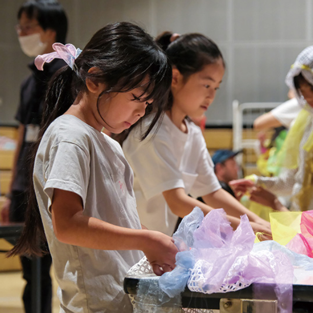 今年の春、熊本県内から参加者を公募し、集まったのは学生クリエイター23名、こどもパフォーマー18名。学生クリエイターが舞台で使う音楽や映像、出演者の衣裳を、小学生のこどもパフォーマーが自分たちが着る衣裳とダンスを作り、みんなで力をあわせてひとつのダンス作品を創作しました。舞台のタイトルは『はじまり はじまり ~県劇舞台づくり学校~』。