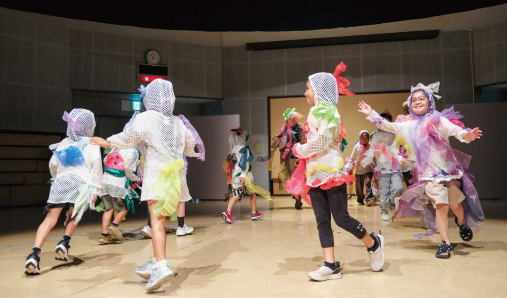 開校式の翌週からは、クリエイションのスタート。まずは体を楽しく動かし、衣裳をつくる中で、仲を深めていきました。その後は課題の振付を覚えたり、自分のパートの振付をつくったり、本格的なダンスの創作に入っていきました。