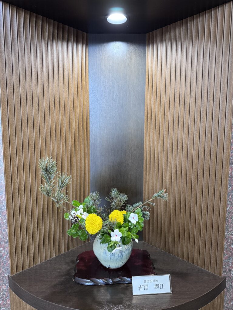 いつも欠かさず四季折々の生け花が展示されみなさまをお迎えしています。