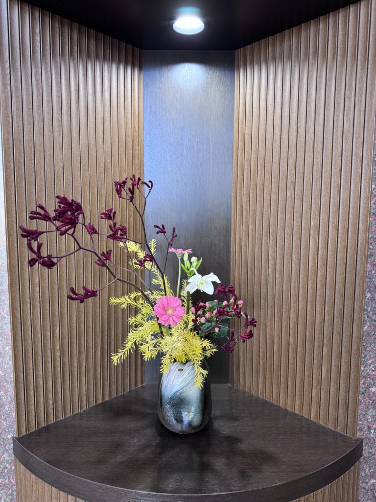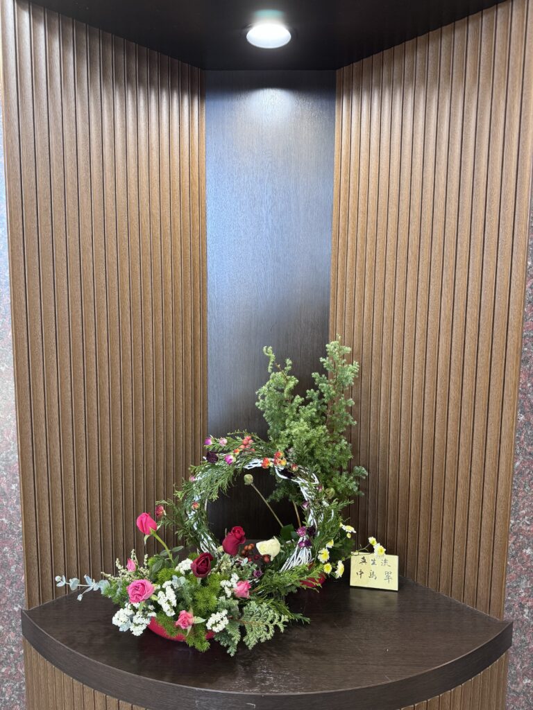 いつも欠かさず四季折々の生け花が展示されみなさまをお迎えしています。