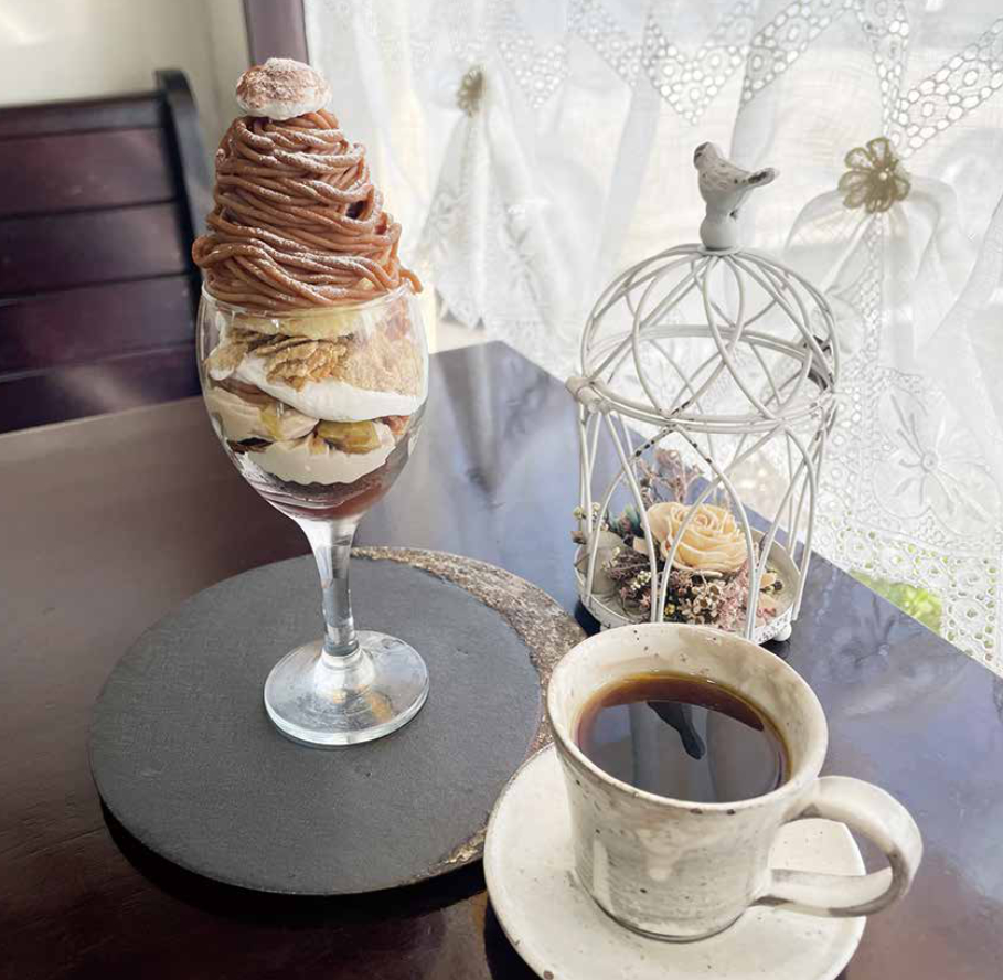 季節の果物をメインに使った大人気のパフェは構成や食感にこだわった一品。取材時は、手間暇かけて柔らかく煮込まれた栗の渋皮煮や滑らかなシャンティクリームを使ったモンブランパフェでした。優しい甘さのパフェは、最後にさっぱりと食べ終えられるように工夫されているそうです。