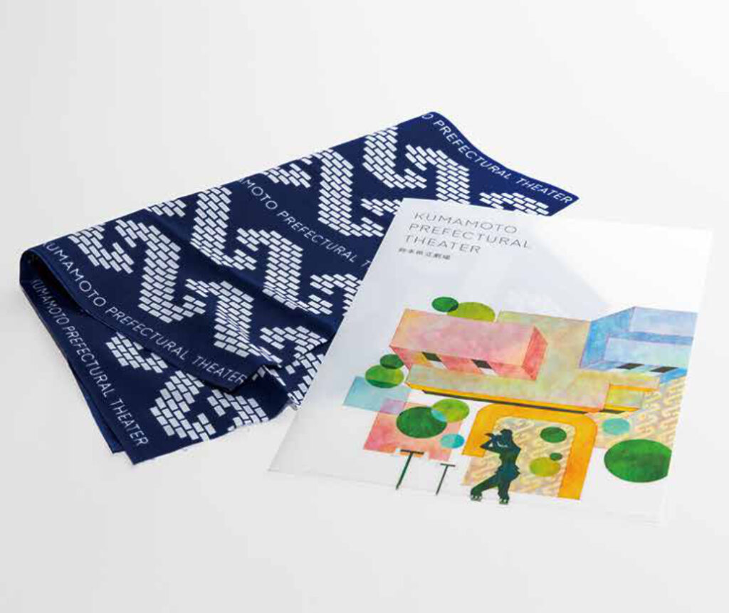 手ぬぐいは劇場床タイルに描かれている「吉原つなぎ」の模様を完全再現。シックな印象で日常使いにもおすすめです。県劇の外観をモチーフとしたイラストが描かれたクリアファイルは楽譜や書類入れとしてご利用いただけます。劇場にご来館の際は、ぜひ管理事務所にお立ち寄りいただき、コンサート等観劇記念のお土産としてお買い求めください。