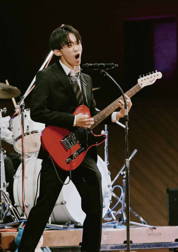 この熊本高校予餞会は、受験直前の1月末頃に開催されるのが習わしとなっており、形を変えながらも半世紀以上もの間ずっと受け継がれてきたものです。予餞会の実行委員会は、生徒会役員を中心に、有志として手を挙げた1年生、2年生の総勢27人。準備期間わずか3カ月で出演回体の調整から進行計画の作成、本番を想定したリハーサルなどを重ねて本番当日を迎えました。生徒会長であり、準備委員会のリーダーを務めた2年生の奥村拓斗さんは、1年生の時はバンド演奏で参加。「今年は実行委員会長として準備をしながら、演者としても参加したくてアコースティックギター同好会から出演しました」と語るように、企画する側も楽しむ文化が受け継がれていることがうかがえます。